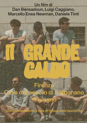 - 21:30 Proiezione IL GRANDE CALDO, un film di Dan Bensadoun, Luigi Caggiano, Marcello Enea Newman, Daniele Tinti (55’) con breve introduzione di “In fuga dalla Bocciofila”.