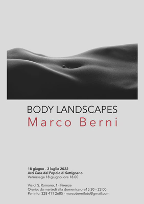 Inaugurazione della mostra fotografica di Marco Berni dal titolo “Body Landscapes”. Circa venticinque foto che raccontano il corpo delle donne. Visioni prospettiche e punti di vista insoliti che Marco Berni utilizza come indagine nell’universo femminile, carico di sensualità. Fin dalle sue origini il corpo femminile è sempre stato protagonista nell’arte preistorica fino ai giorni nostri e nonostante il lungo percorso è sempre stato soggetto di esplorazione e di scoperta. Marco Berni, una grande passione per la fotografia d’autore, da lungo tempo ha scelto il corpo umano come sua personale ricerca, anche se alterna con still life e paesaggi, utilizzando un metodo molto originale che gli ha permesso di ricevere molti premi e riconoscimenti a livello nazionale e internazionale.